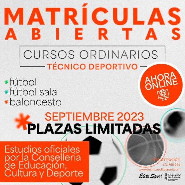 Una temporada más, desde el centro de formación de técnicos deportivos se estrena un nuevo curso ordinario de invierno con la novedad de su formato online en la parte teórica a partir de septiembre. El centro de formación EliteSport abre el período de matriculación para los cursos ordinarios 2023-2024 en las disciplinas de Fútbol, Fútbol…